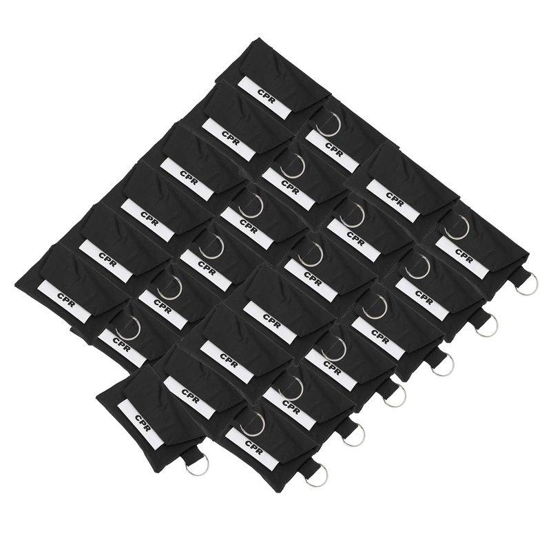 ASA TECHMED 25 Pack CPR Face Mask Key Chain Kit with Gloves | One Way Valve Face Shield Mask First Aid Kit, for Travel, Home, Office, Boat, Car, EMS, Firefighters, Nurses, First Responders (Black)