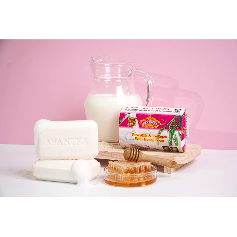 ASANTEE Rice Milk with Collagen and Honey Soap - Luxurious Body Soap for Soft, Clear, and Radiant Skin - Scent Long-Lasting (6-Packs)