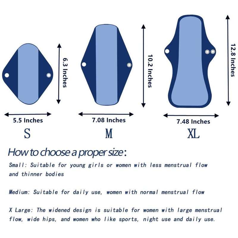 - 3 Sizes & 1 Wet Bags: A considerate set, whether your menstrual flow is heavy or low, day use or night use, travel or exercise, our sanitary pads are the perfect choice for you. Comes with two waterproof straps, convenient and portable