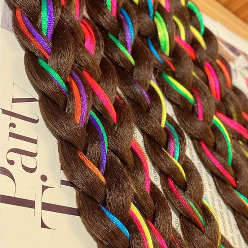 - Made of high quality syntheric heat-resistant fiber, super similar as human being hair; braided with some colored ropes, sexy and pretty.