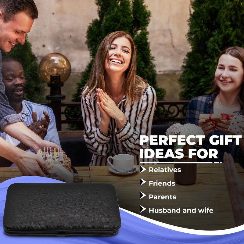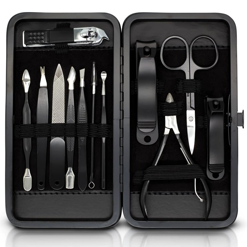 ASH ISLAND Nail Clippers Set - Black Stainless 12 in 1 For Men And Women Manicure Pedicure Travel Kit Luxury Nail File Sharp Nail Scissors Fingernails Toenails with Portable Stylish Case