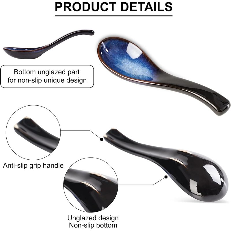 - Non-slip and Easy to clean: The front of this Asian spoons is smooth and flat, Unglazed part of spoon bottom for unique non-slip design, which can bring more convenience to your use ;Asian ceramic eating spoons are easy to clean and store. Can be washed by hand or Dishwasher.