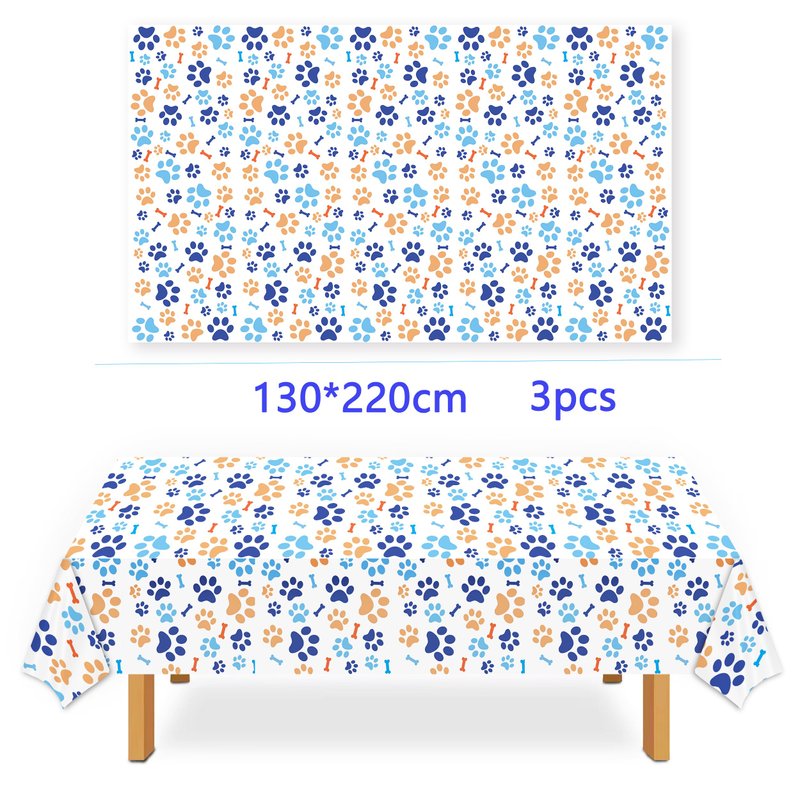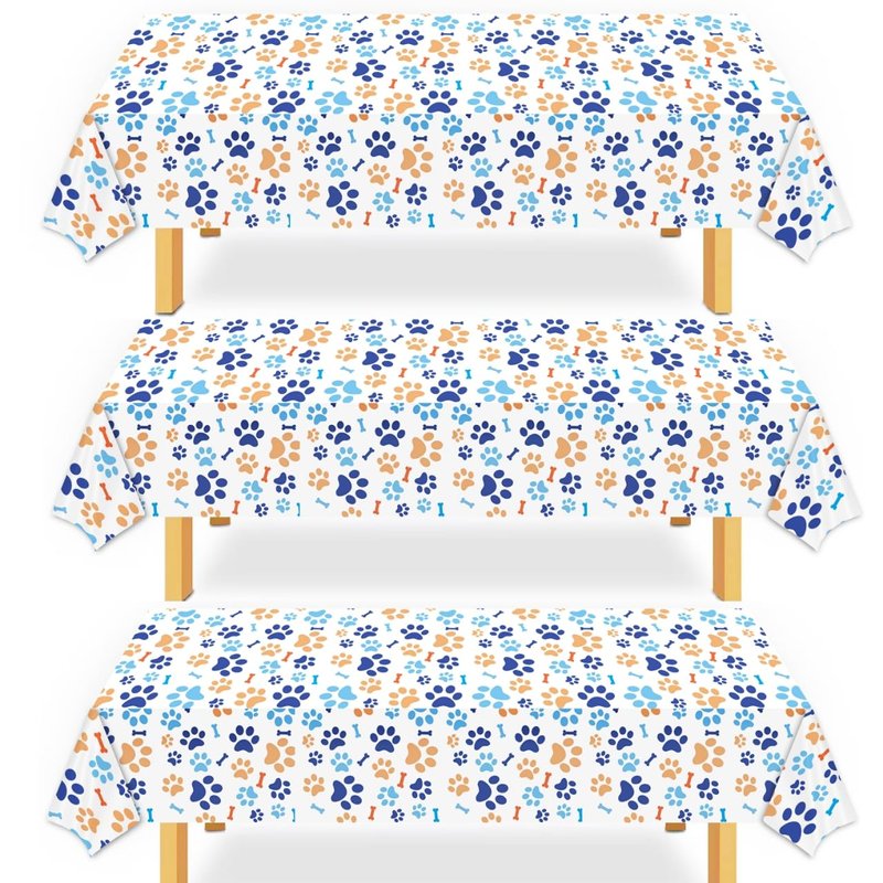- The packaging includes: 3 small dog themed tablecloths with cute patterns and pictures of dog paws and bones, making it an excellent dining table decoration for your pet themed party!.
