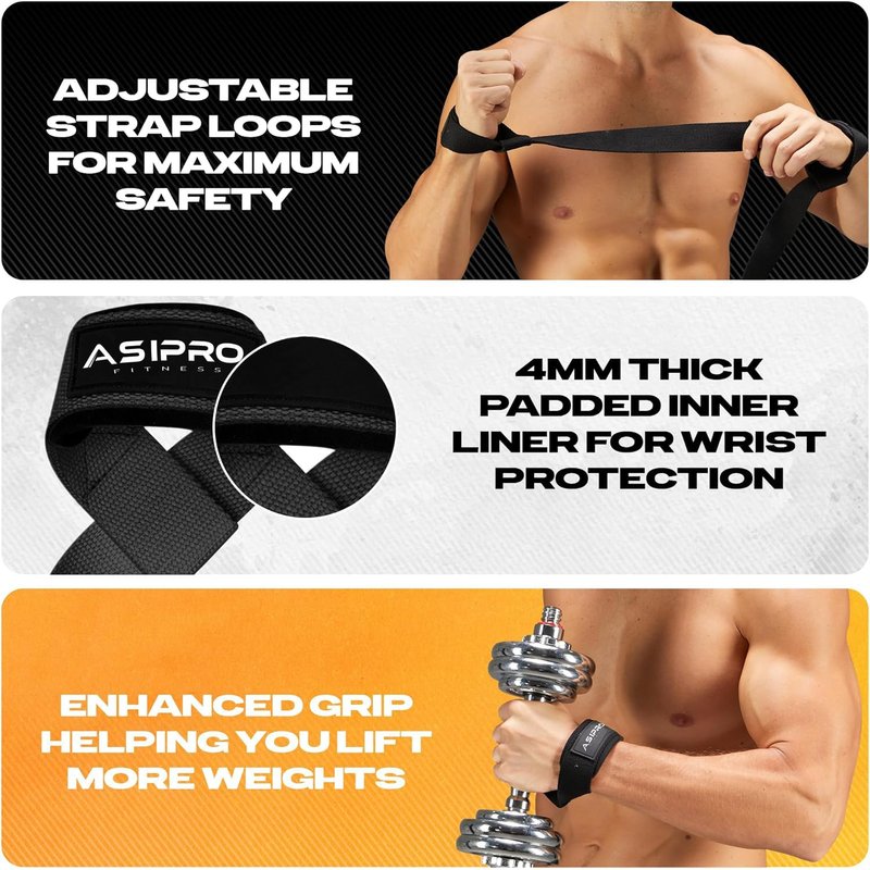 - No Fear of Tear and Cracking Weightlifting Straps Wrist: Weight lifting wrist straps men & women high-quality cotton material gives you a feel of professional standards. These ASIPRO wrist straps gym gives you durability during your long workout sessions.
