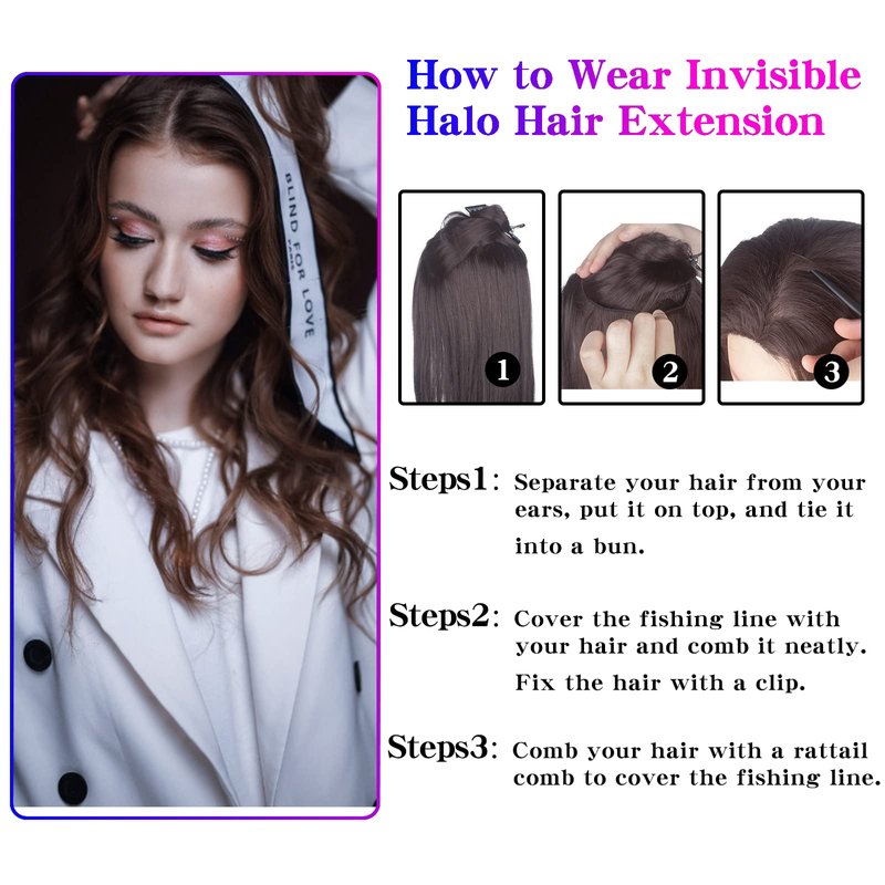 - 【QUALITY MATERIAL】: The Hair Halo Extension Used High Quality Heat Resistant Fiber which Feels Soft Touch Can be Curled or Straightened by Your Need.Realistic and Naturally Looking which Makes You Wear More Comfortable and Perfect for Long Term Use.