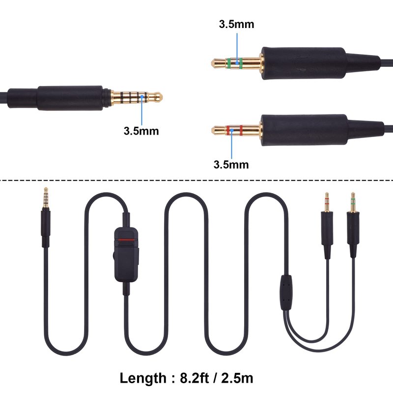 - Plug and play, 3.5mm plug, length 8.2ft / 2.5m, Internal use of highly conductivity OFC copper wire, Improve the resolution and separation of the headset