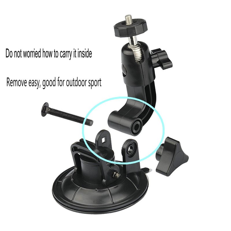 - Sturdy suction cup camera mount: Extendable height with 360 Degree tilt, turn and rotation offers unlimited shooting possibilities.It comes with an adaptor that can move the camera in variety of angles.