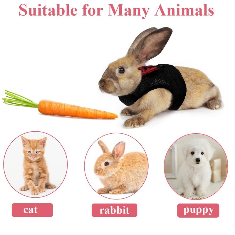 ASOCEA Adjustable Bunny Harness and Leash Soft Pet Harness Vest Cloth Lead for Small Animals Rabbits Ferret Kitten Black