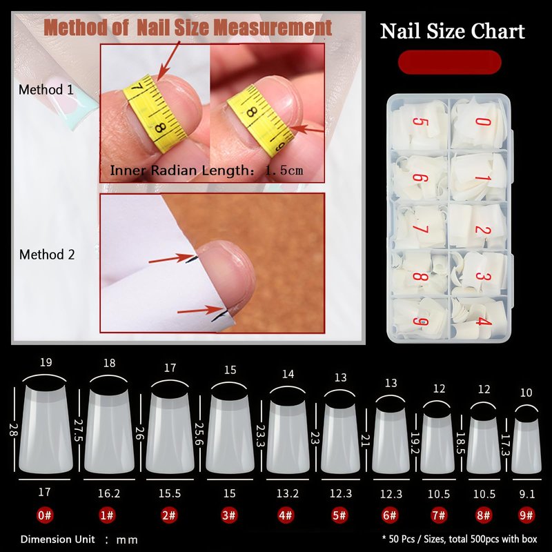 - Package Included - You will receive a box of 500 Pcs natural pre-shaped duck nail tips in 10 sizes (50Pcs/size), These nail extensions can help you change your nail shape easily, and for easy decoration manicure of nail arts.