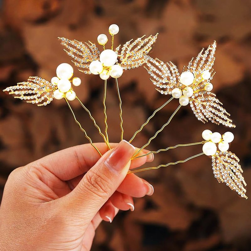 - Well made bridal hair accessories.Bride hair pins with artificial rhinestones and pearls decoration. Beautiful look and easy to use. They are good assistant for you to DIY your own hairstyles.