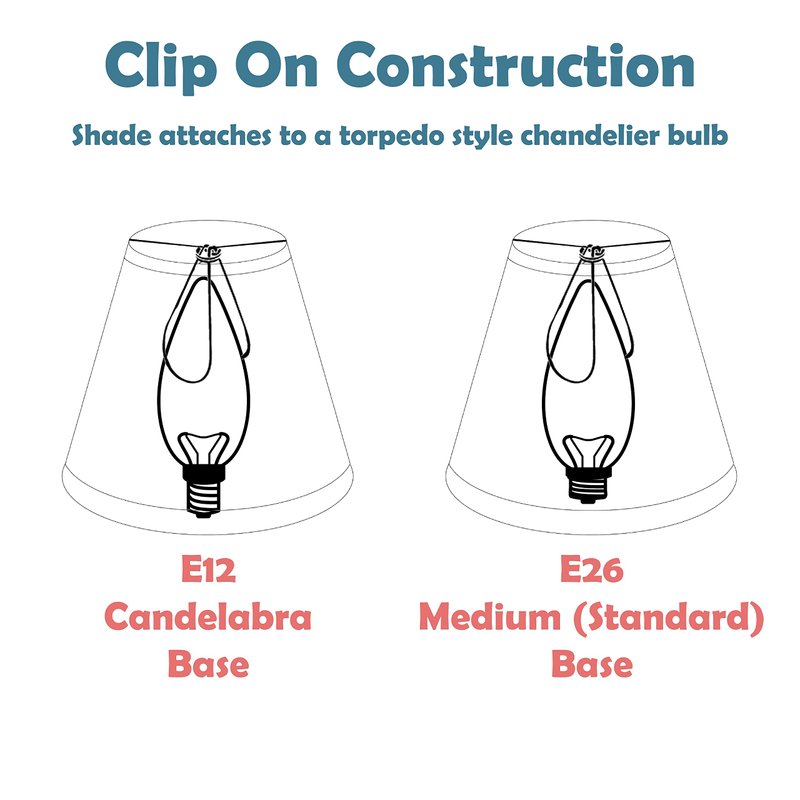 - Clip-on style fitter designed for bare torpedo chandelier bulbs (bend tip bulbs not recommended) either in candelabra base (E12) or medium base (E26), light bulbs not included