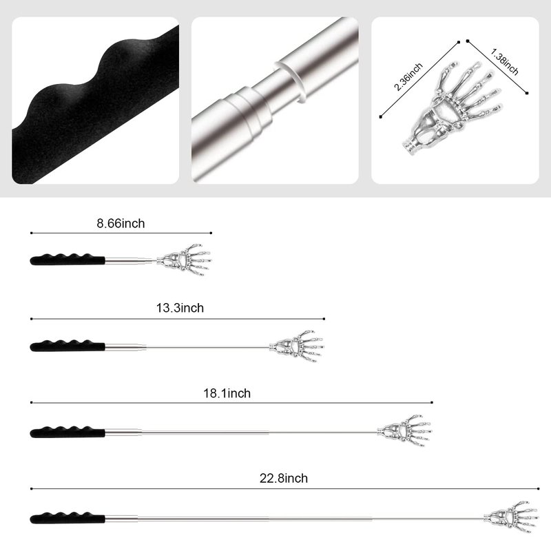 - Long Enough: The Rake Claw back scratcher can extend up to 7.67 inch to 26.7 inch, the Bear Claw and the Ghost Hand Claw back scratcher can extend to 8.66 inch to 22.8 inch.