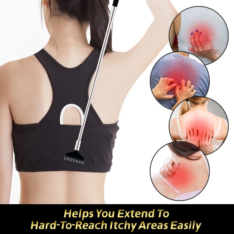 - Manual Back Massager: 3 different back scrappers provide you with different ways to deal with itching. Easily scratch those hard to reach spots and relieve stress.
