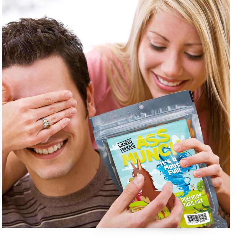 - FUNNY GAG GIFT FOR ADULTS – Funny gag gifts spice up even the most mundane or stressful days at home, work, or on-the-go. Friends will laugh their asses off when getting a surprise bag of Ass Munch Trail Mix. Who wouldn’t want to chomp down on some tasty ass?