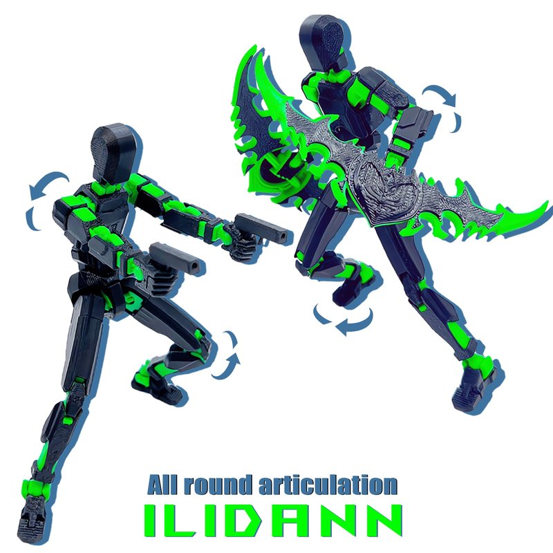 (Assembly Completed) T13 Action Figure Set, 3D Printed Toys Robo 13 Action Figure,Dummy 13 Titan 13 Action Figure (Black Green)