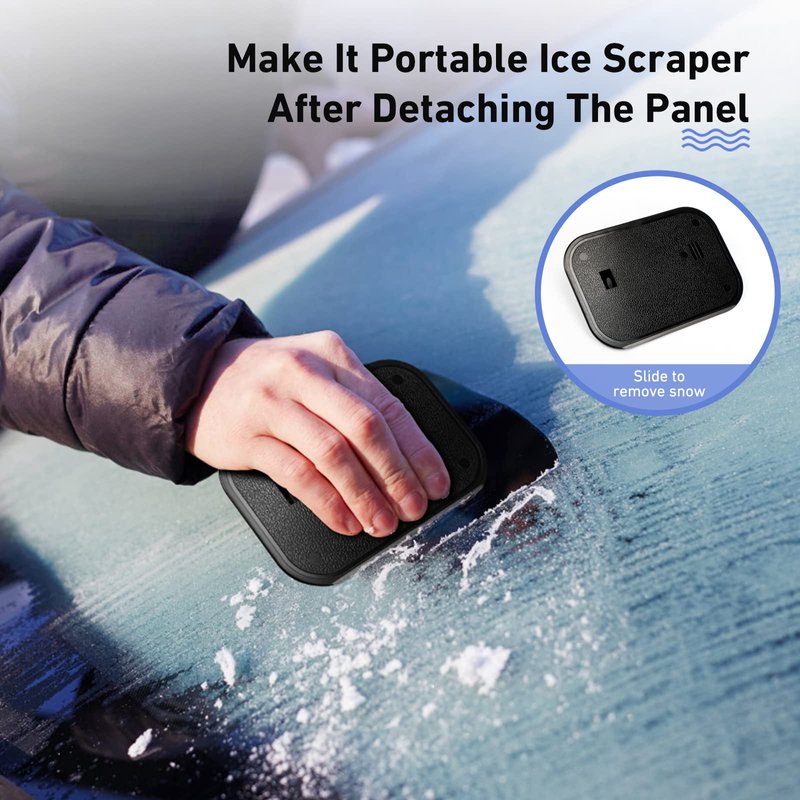 - The ice scraper design on the panel could help you deal with the trouble of the ice attached to your vehicle, it is easy to break ice by using the ice removing sawtooth and clean ice by the ice scraper. A safety hammer at the joint of handle and panel shall be a choice to get through an emergency, which is made of high-grade carbon steel