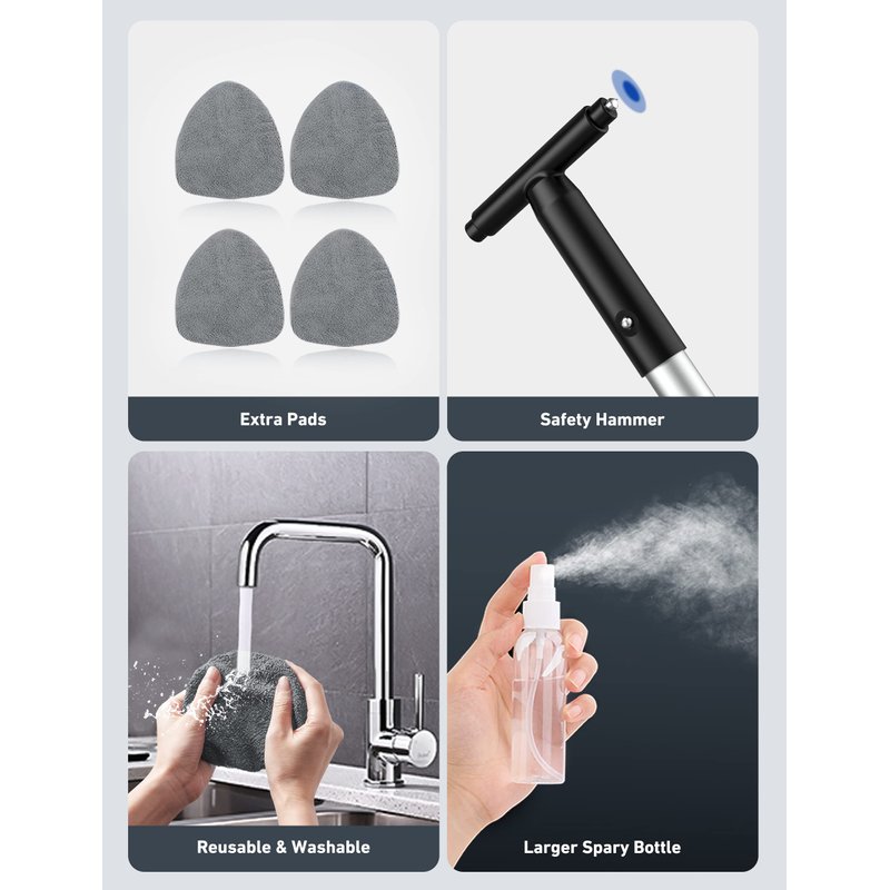- Intimate Combination: The car windshield cleaner with a detachable handle, can be disassembled into halves for storage. It comes with 4 pcs washer towels (one more than others) and one 60ml spray bottles.
