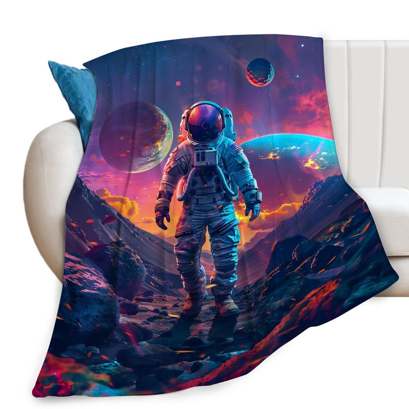 Astronaut Print Blanket Space Planet Galaxy Throw Blankets Gifts for Couch Sofa Bed Stuff Decor Lightweight Soft Cozy Fleece Plush Warm Flannel Bedding for Lover Men Women Boys Girls Kids 40"x50"