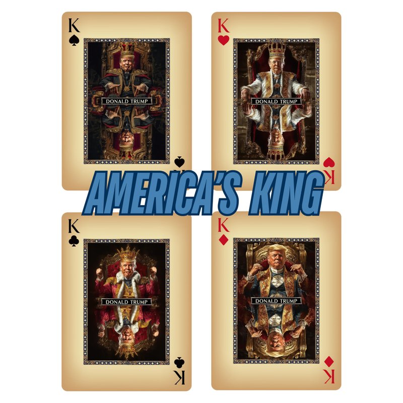 - TRUMP FAMILY & ALLIES PLAYING CARDS: The face cards showcase Donald Trump as the King, Melania as the Queen, and Ivanka, Trump Jr., Elon Musk, and J.D. Vance as Jacks. Every face card has a unique, detailed design representing these influential figures.