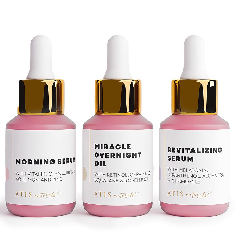 Unveil the radiant, youthful complexion you've always desired with ATIS Naturals Premium Serum Trio - a complete skincare regimen designed to transform your skin from morning to night.