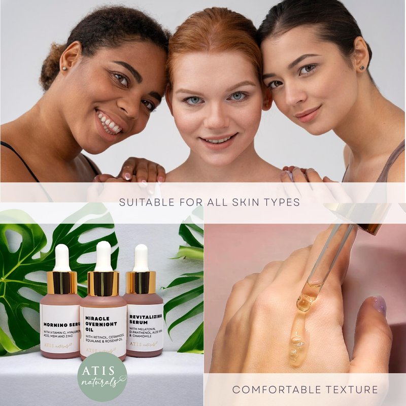 - GLOW UP PLAN: Start fresh with our Morning Serum (hello, Hyaluronic acid & Vitamin C!), then let the night work its magic with wrinkle-fighting Miracle Overnight Oil or our skin-soothing Revitalizing Serum.