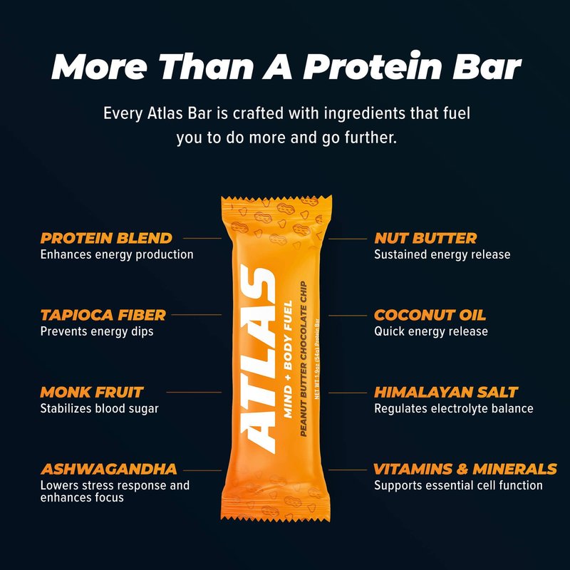 - A BAR LIKE NO OTHER: Atlas Bars combine clean ingredients with outstanding nutrition to create a bar like no other. Our science-backed formula is made with natural ingredients that will keep you full, focused and energized all-day long. Whether you’re working, training, or playing, our bars are designed to keep you performing at your best.