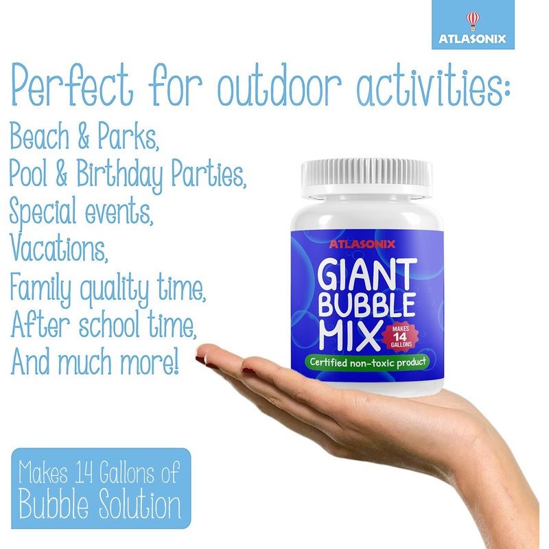 - ✅FUN, GIANT BUBBLES THAT WON’T POP Atlasonix brings you the latest non-toxic, certified natural way to make enormous loads and loads of bubbles the likes of which have never been seen before.