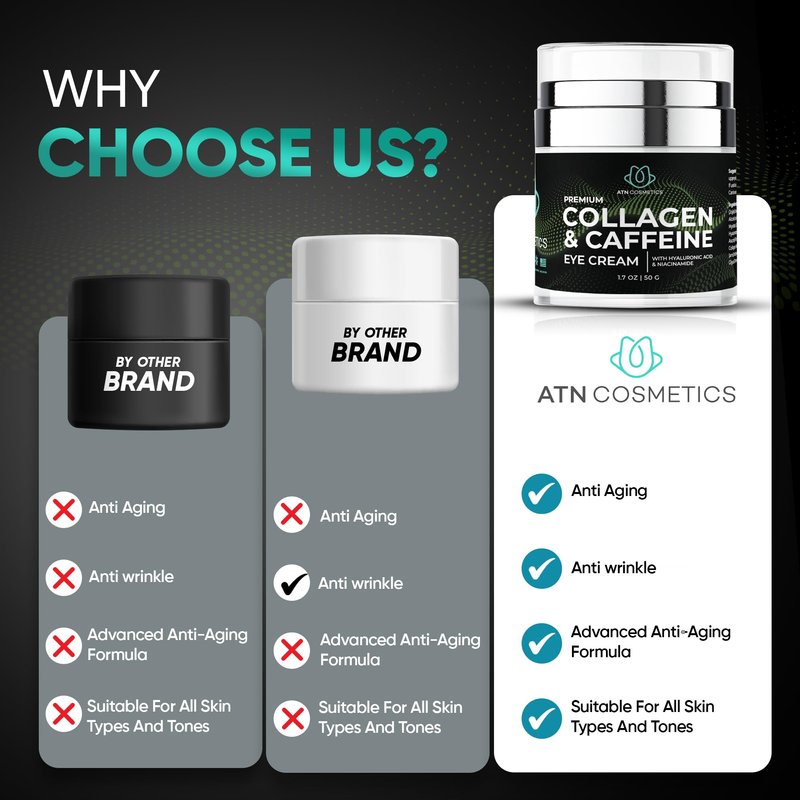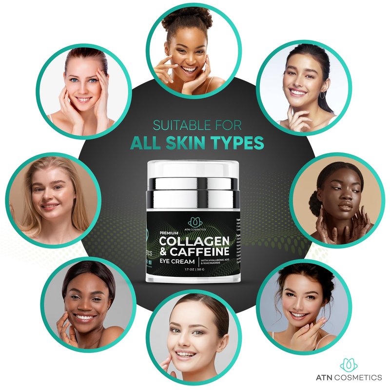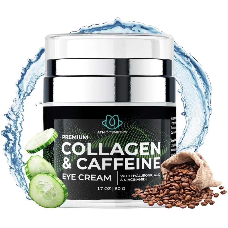 ATN Cosmetics Caffeine Eye Cream, Collagen Eye Cream for all skin types, For Wrinkles & Dark Circles, and Puffiness, Infused with Hyaluronic Acid & Niacinamide, 1.7 OZ / 50 G