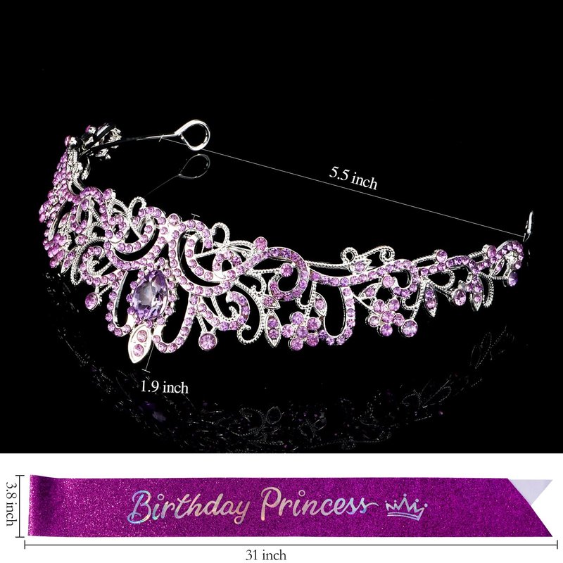 - 【Crystal Tiara & "BIRTHDAY PRINCESS" Sash Kit】The sparkly rhinestone tiara is made of a sturdy metal, super solid and sturdy and can be worn for years. The little gems on the crown shine brilliantly and the birthday sash is shimmering nicely. The glitter & foil “Birthday Princess” sash is well constructed, and come with a safety pin to fasten the ends for the best fit.