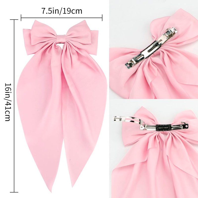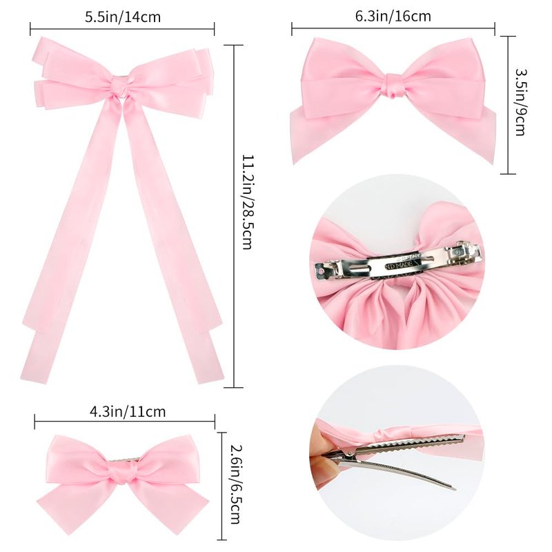 Atoden Pink Hair Bows for Women Girls 4 Pcs Silky Satin Hair Ribbons Oversized Long Tail Bow Hair Clips Hair Barrettes Alligator Metal Clips Big Bowknot Cute Hair Accessories Gifts