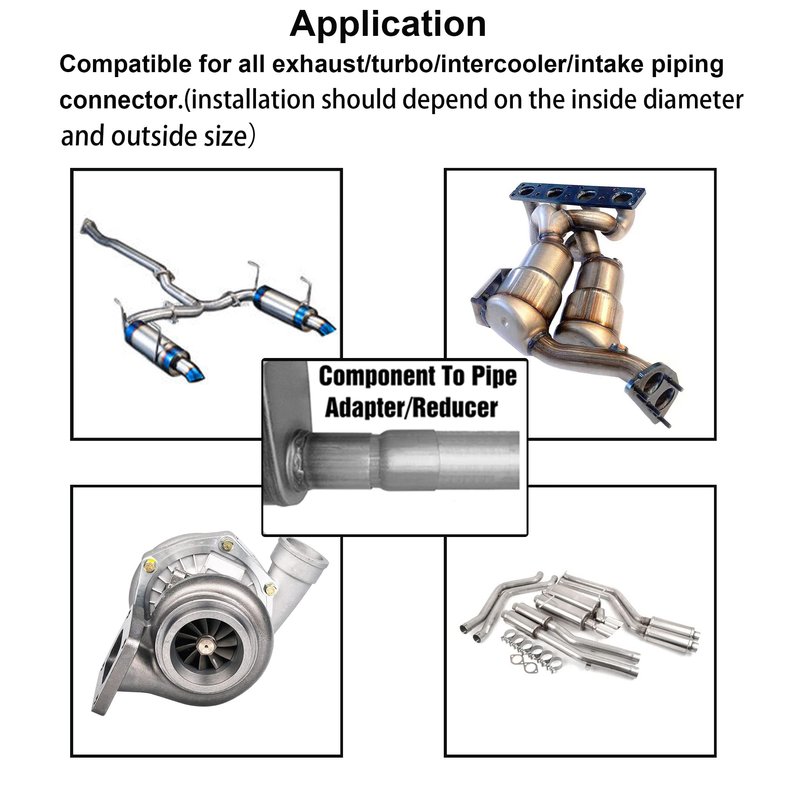 - 【Applications】Universal fit for all exhaust/turbo/intercooler/intake piping connection. (Installation should depend on the inside diameter and outside size,use for pipe to pipe (Use when one of your pipes is smaller than the other)