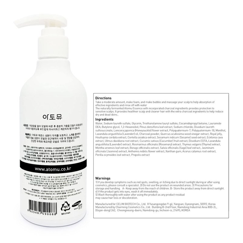 ATOMU Real Charcoal Shampoo Scalp Care Shampoo Calming Scalp Made with Naturally Fermented Ingredients Suitable for Sensitive Scalp Effectively Improves Itchiness No Parabens 10.14 fl oz
