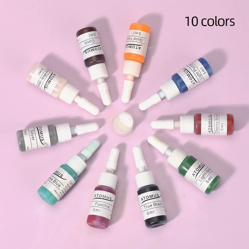 ATOMUS Tattoo Inks Set, 10 Colors 1/6oz (5ml) Complete Tattoo Pigment Kit for Body Tattoo Practice Tattoo Supply Kit