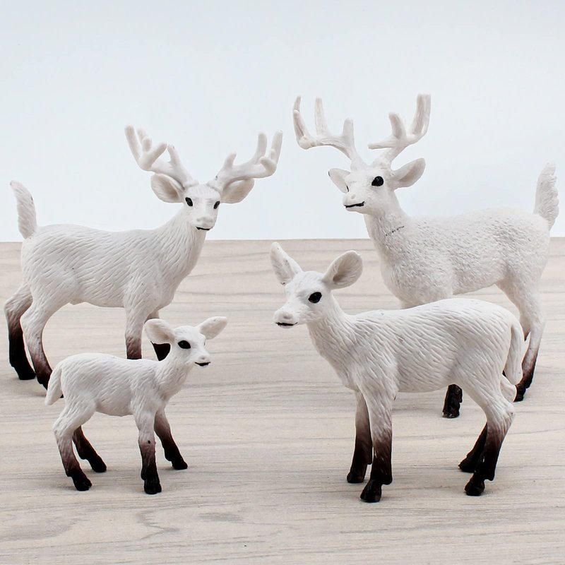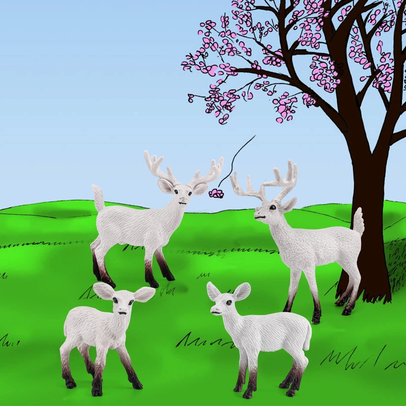 Atralo Service Wildlife Animal Figures Model Playsets 4 PCS White-Tailed Deer Figure Model Toy Desktop Decoration Collection Party Favors Toys for Boys Girls Kids