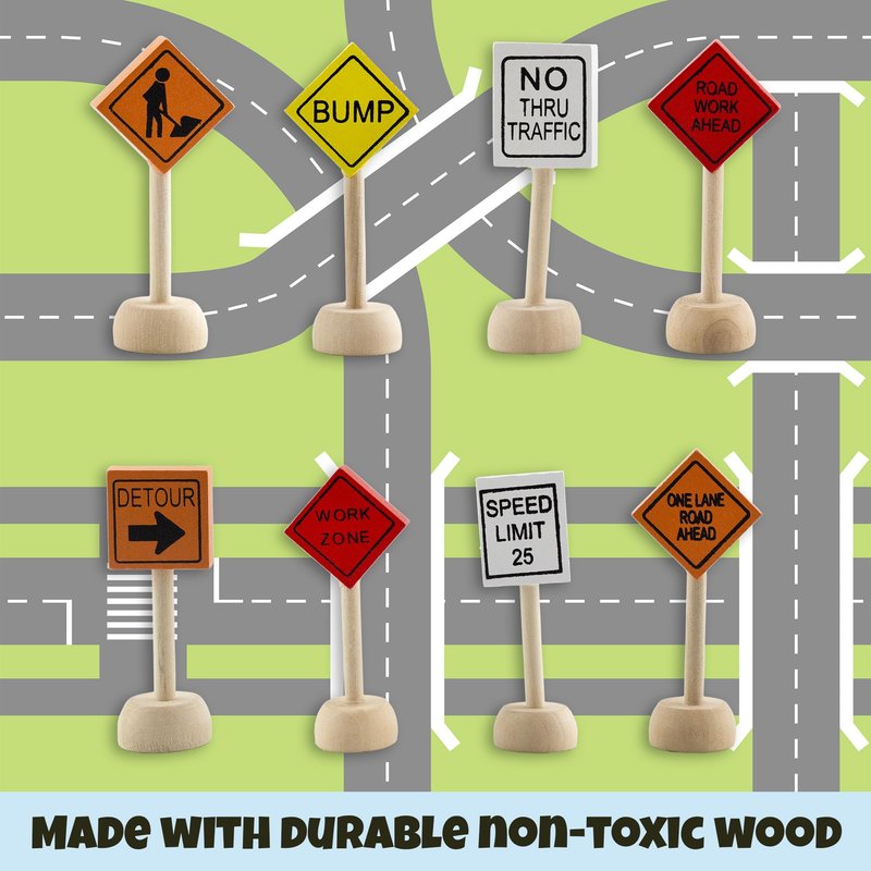 Attatoy Toy Wooden Road Construction Traffic Sign Set; Street Signs Small Toy Cars and Other Diecast Vehicles & Wood Cars & Toys