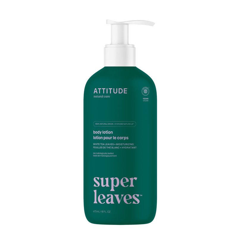 ATTITUDE Body Lotion, EWG Verified Moisturizer, Vegan Skin Care Products, Non-Greasy, Hydrating for Dry Skin, Cruelty Free, Moisturizing, White Tea Leaves, 16 Fl Oz