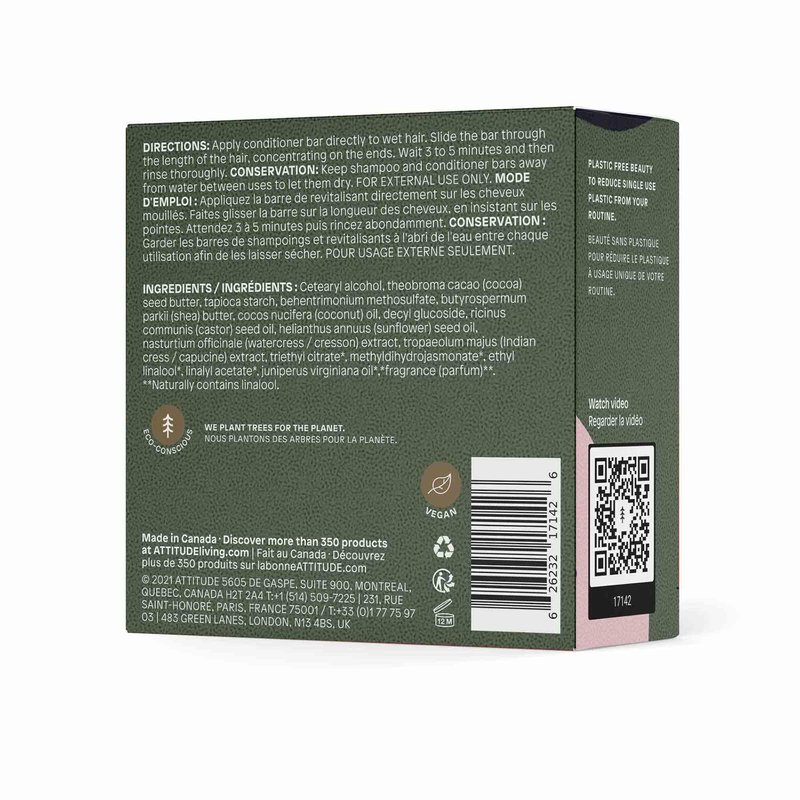 ATTITUDE Hair Conditioner Bar, Plant- and Mineral-Based Plastic-free Beauty Care, Vegan and Cruelty-free, Hydrating, Herbal Musk, 4 Oz