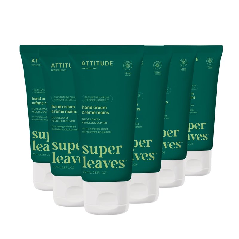ATTITUDE Hand Cream, EWG Verified, Plant and Mineral-Based, Vegan Personal Care Products, Olive Leaves, 2.5 Fl Oz (Pack of 6)