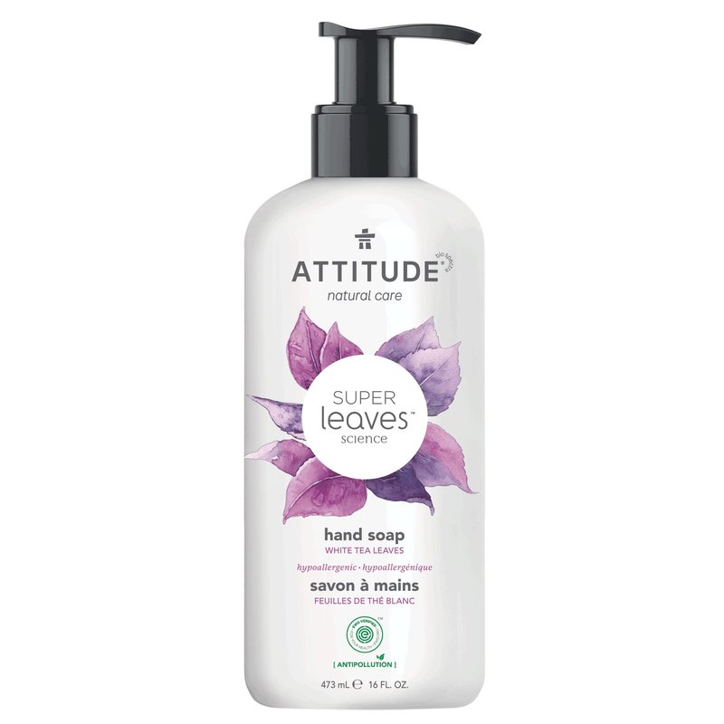 ATTITUDE Liquid Hand Soap, EWG Verified, Plant and Mineral-Based, Vegan Personal Care Products, White Tea Leaves, 16 Fl Oz
