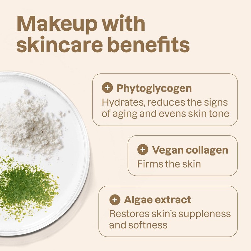 - MAKEUP AS SKINCARE: Made with 99.9% natural origin ingredients including hydrating phytoglycogen, vegan collagen and algae extract to hydrate and improve the appearance of skin.