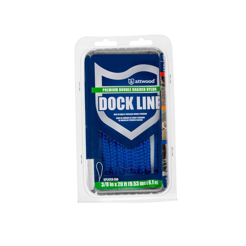 Attwood 117607-7 Premium Double Braided Nylon Dock Line, 3/8-Inch Thick, 20 Feet Long, Pre-Spliced One End, Blue