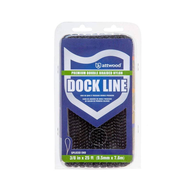 Attwood 117681-7 Premium Double Braided Nylon Dock Line, 3/8-Inch Thick, 25 Feet Long, Pre-Spliced One End, Black