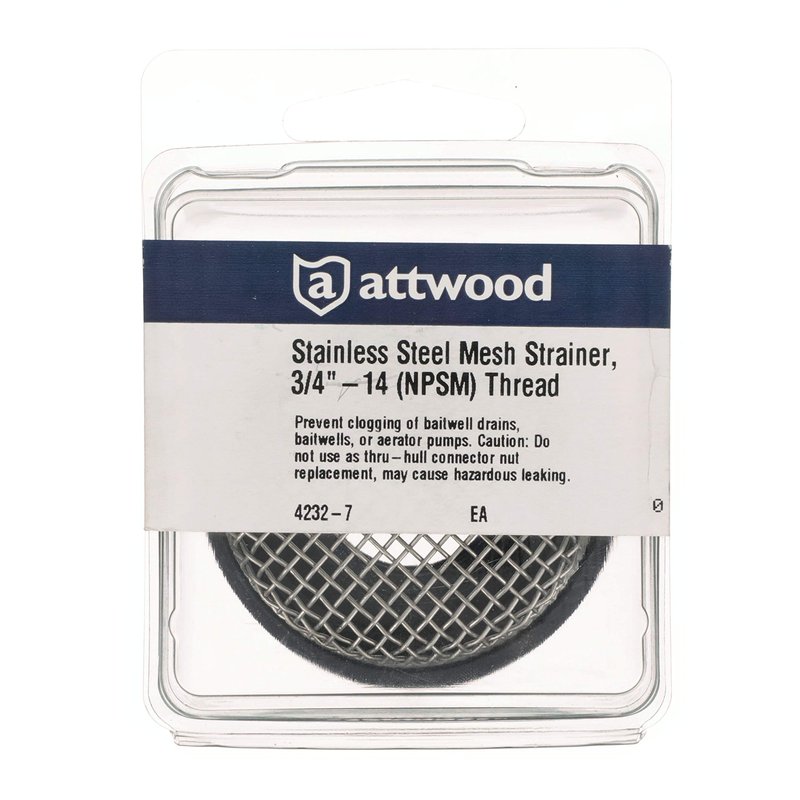 Attwood 4232-7 Mesh Strainer/Drain Filter, Stainless Steel Mesh, Fits ¾-Inch Aerator Inlet and 3886-1 Thru-Hull