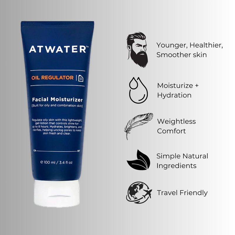 ATWATER Mens Face Moisturizer with Oil Control Complex, Unscented Lightweight Formula - Mens Face Lotion for Oily Skin that Hydrates and Controls Shine - 3.4 oz