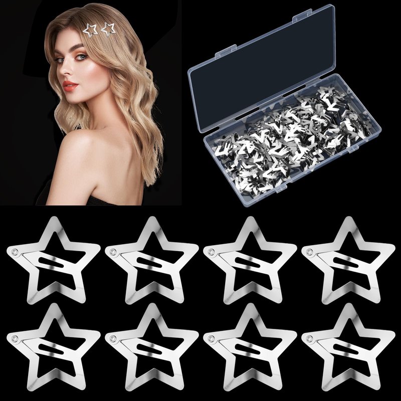 AUAUY star hair clip Y2K accessories silver hair clip Retro trend design: Y2K style design can instantly enhance your sense of fashion and uniqueness, adding super retro charm. Practical and fashionable at the same time: very practical, suitable for bangs hairpins, side hairpins, or ponytails, braids and various hairstyles, allowing you to stay elegant and comfortable on any occasion. Star hair clips are perfect gifts for women, lovers, family members, daughters, friends, classmates and colleagues on various holidays. Star hair clips are suitable for different occasions, such as sports, yoga, office, parties, family life, bathing, etc. When paired with shopping, travel, weddings, and parties, they will make you more elegant and charming. Parties, Ceremonies, Birthdays, Banquets, Daily Wear. Size: 1.22in (3.1cm) Quantity: 50PCS Pattern: stars Color: silver