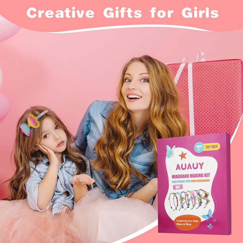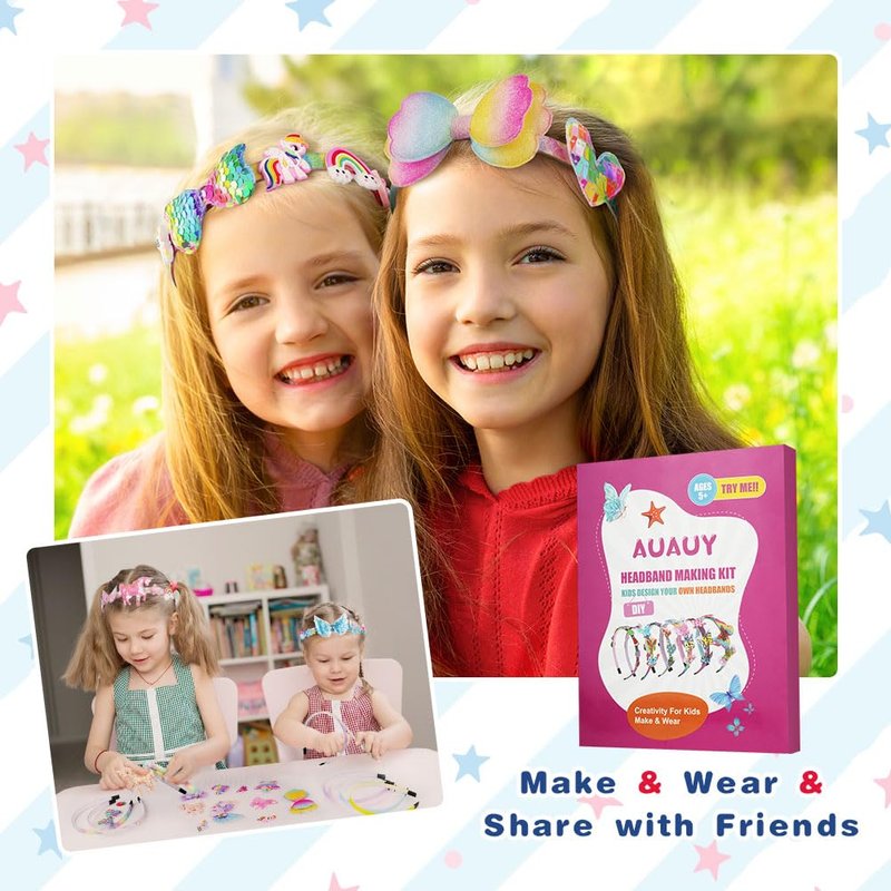 AUAUY Girly Headbands Making Kit for Girls, Fashion DIY Band Hair Accessories for Girls Age 5+, Creative Unicorn Headband Making Kits Toys for Kids Girls Age 5-12 Birthday Gifts & Presents