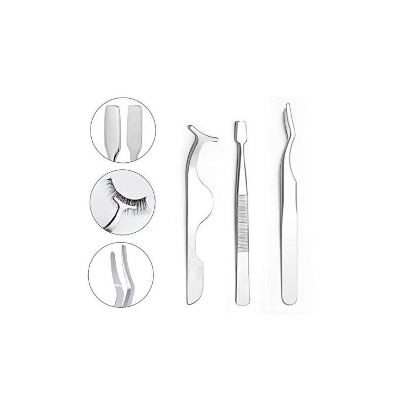 AUCH False Eyelashes Applicator Kit Fake Eyelash Placement Tools 3Pcs, Silver