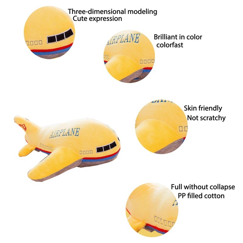 - 【Airplane Size】:The yellow airplane plush toy stuffed pillow measures about 15.7 inches/40cm, filled with high quality soft pp cotton, very realistic, easy to clean, not easy to deform, suitable for the whole family. So you can easily cuddle, sit or lean on the cute airplane plush animal while reading or watching TV
