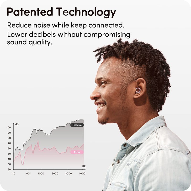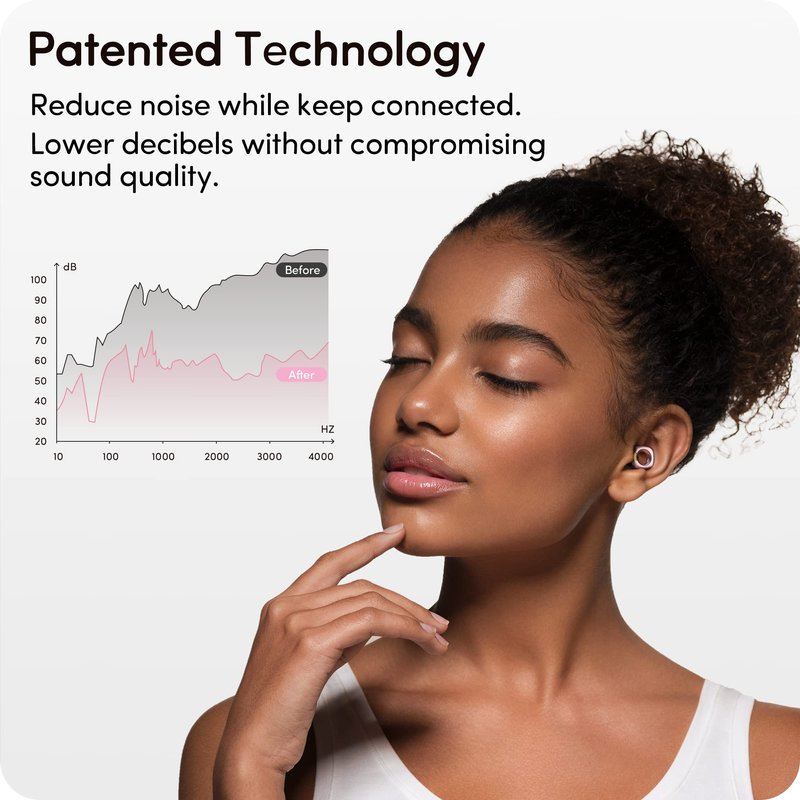 - Professional Design - Audree Style applies innovative and patented attenuation filters material inside the square ring. It provides the most natural and high-fidelity sound with noise reduced evenly. All the ear tips are made from food-grade silicone, which are skin-friendly for whole-day wearing.