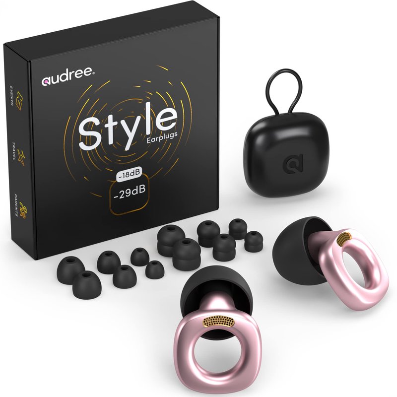 - Noise Reduction - Audree Style high fidelity earplugs protect your ears from harmful noise while allowing you to hear your surroundings clearly. The noise filtering earplugs provids a noise reduction rating of 18 or 29 decibels by choosing different types of eartips, and come in 9 stylish colors.